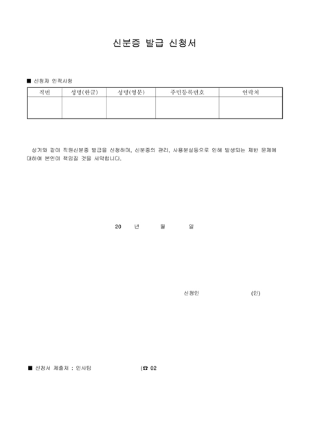 직원신분증을 분실하였을 경우 사용하는 양식으로 신청자 인적사항을 기록합니다.