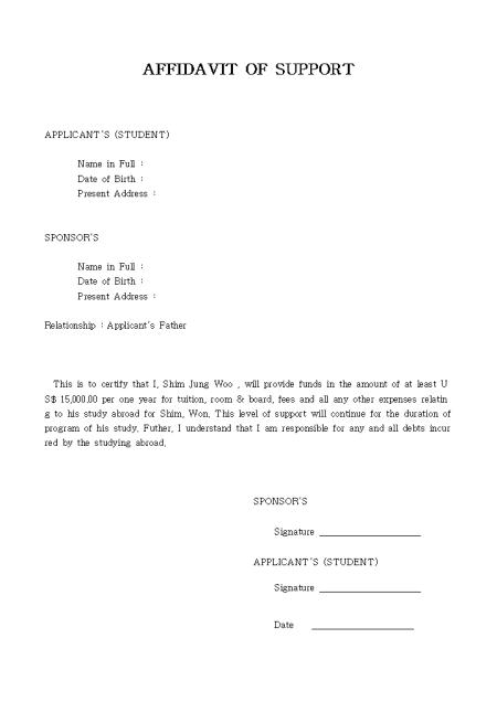영문 재정보증서 샘플입니다.
