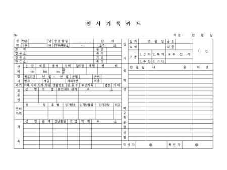 일반적인 인사기록카드에서 보증인사항,상벌,교육훈련을 기록하는 양식입니다.