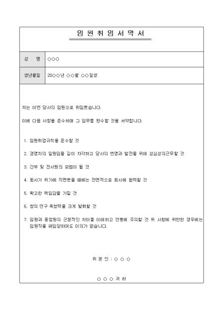 임원으로 취임할때 사용하는 서약서입니다.