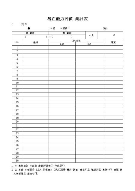 한문으로된 잠재능력평가집계표 양식입니다.