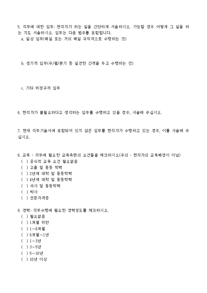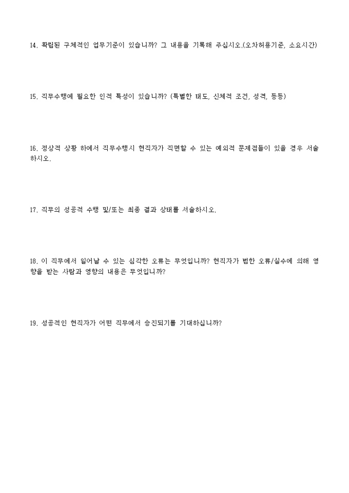 9,000원/월19개의 직무분석 항목이 있는 양식입니다.