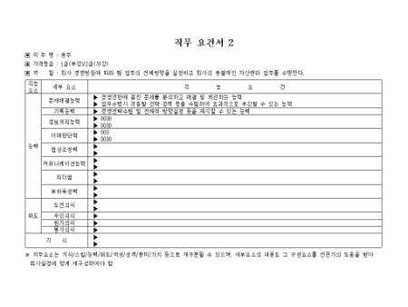 직능요소로 능력,태도로 구분하여 직능요건을 기록하는 직무요건서입니다.