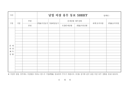납입 이상 유무 통보 SHEET
