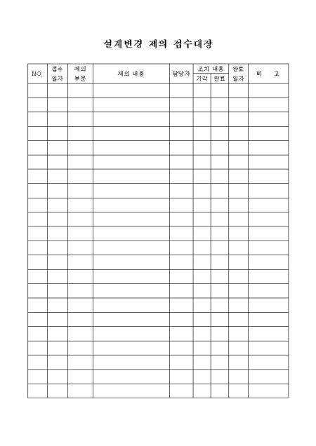 설계변경제의접수대장