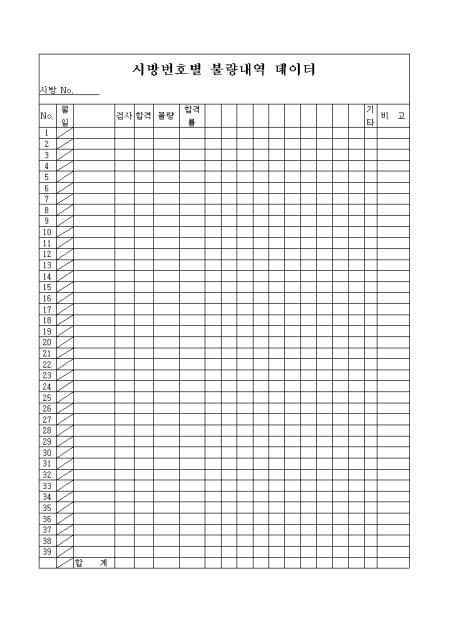 시방번호별 불량내역 테이터를 기록하는 양식입니다.