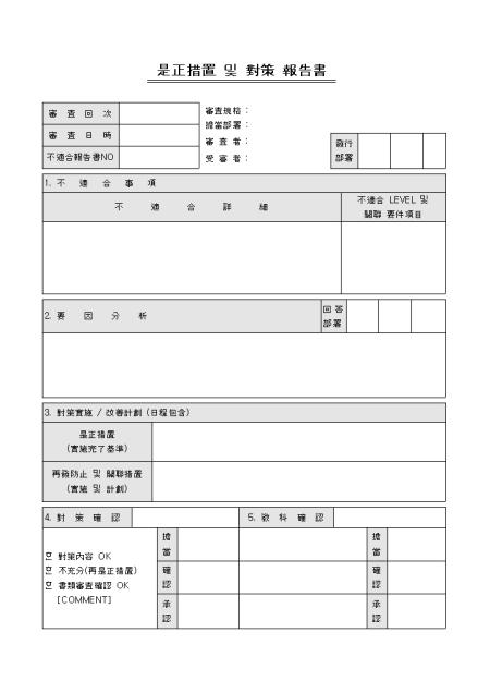 한문으로 기록된 시정조치 및 대책 보고서입니다.