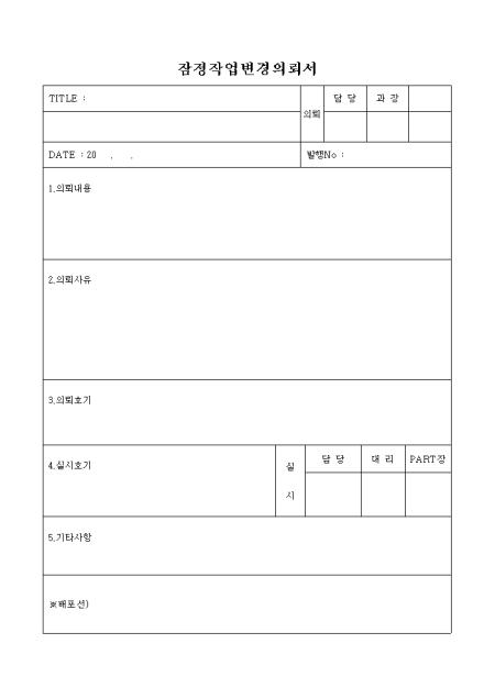 의뢰내용,의뢰사유,의뢰호기,실시호기를 기록하는 잠정작업변경의뢰서입니다.