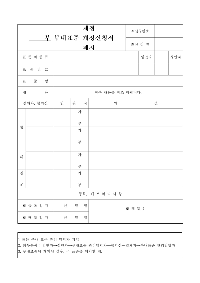 9,000원/월표준의 종류,표준번호,표준명,내용,합의란,결재란이 있는 양식입니다.