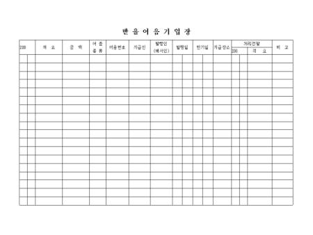 각 업체별 받을 어음에 대해 금액, 종류, 어음번호, 발행일, 지급장소등의 내용을 기재하는 양식입니다.