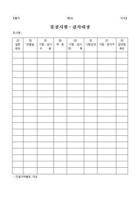 제품 품질의 시험 검사를 기록하는 양식입니다.