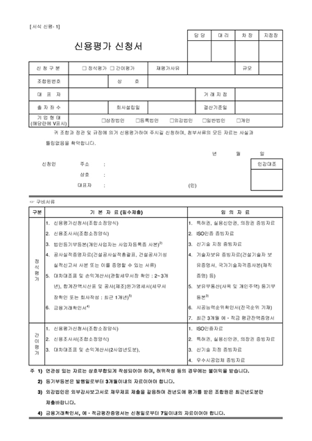 신청구분,조합원번호,상호,대표자,출자좌수,회사설립일,거래지점,결산기준일,기업형태를 기록하는 신용평가 신청서입니다.