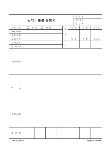교육과정, 일자, 기관, 장소, 내용등을 기재하여 교육, 훈련을 통보할 때 사용하는 양식입니다.