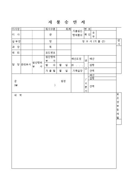 지불에 대한 승인서 양식으로 금액을 포함 각 항목과 내역을 상세히 기록합니다.