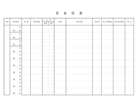 포상일,종별,포상내용,공적사항등을 기록하는 포상대장입니다.