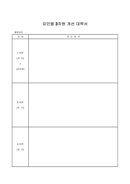 불량요인과 개선대책을 3차원으로 나누어 기재하는 양식입니다.