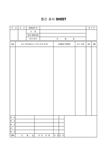 검사항목,체크포인트,검사방법을 기록하는 중감검사시트입니다.