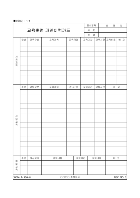 교육훈련 개인이력카드