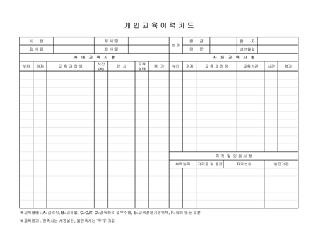 개인교육 이력카드