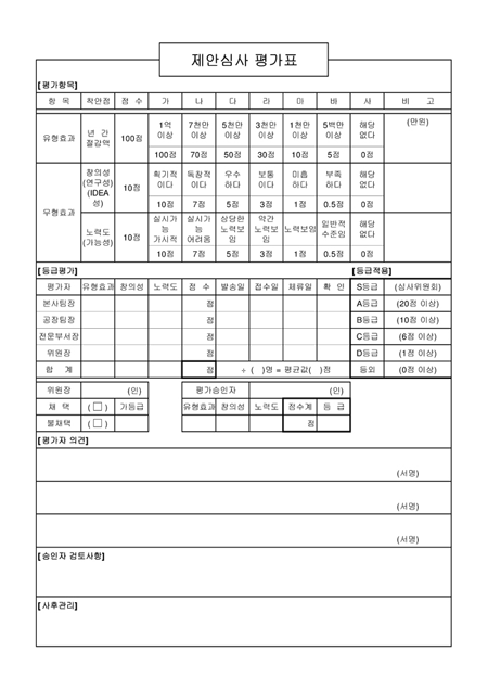 제안심사 평가표