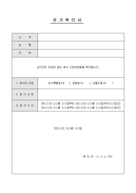 휴가 확인서