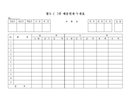 ( )월도( )부매출일계.누계표