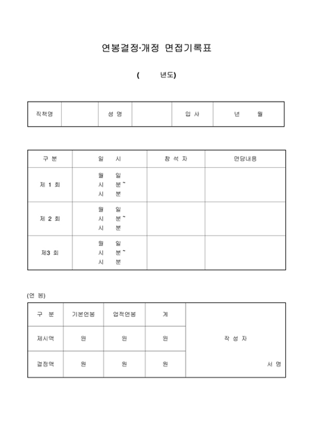 연봉결정 개정 면접표