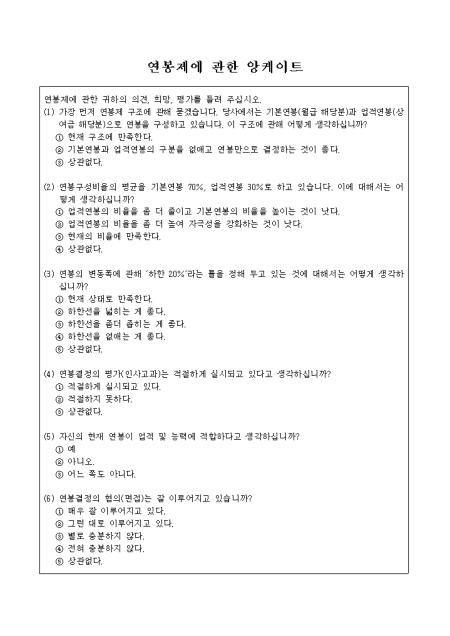 연봉제에관한앙케이트