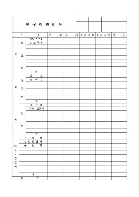 연구비에 대한 내역을 직접비, 제조.간접비로 나눠 관리할때 사용하는 양식입니다.