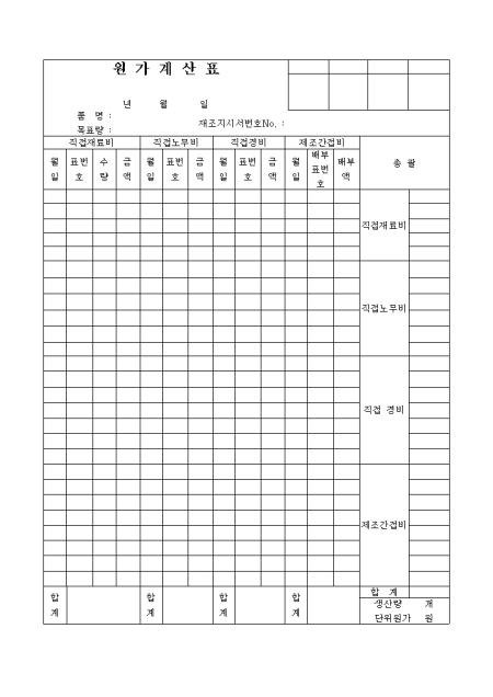공정별원가계산표