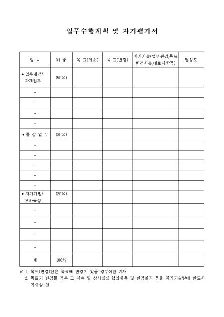 업무수행계획 및 자기 평가표