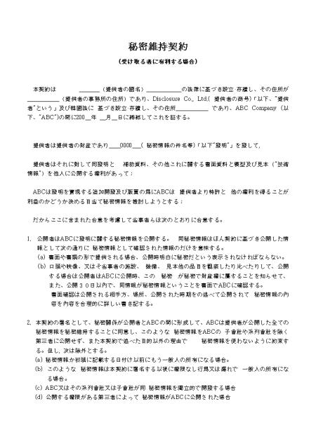 04_3 비밀유지계약 (받는측에 유리한 경우) 秘密維持契約(일어)