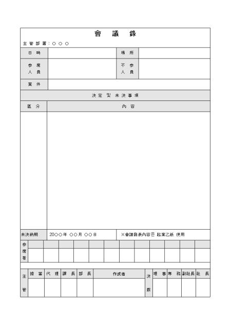 한문으로 표기된 회의록 양식입니다.