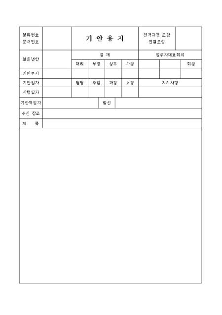 결재란,기안부서,기안일자,시행일자,기안책임자,제목,내용을 기록하는 기안용지입니다.