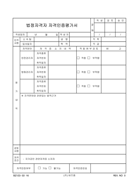 법정자격자 자격인증평가서