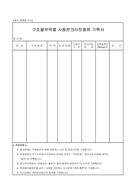 구조물부위별콘크리트기록서