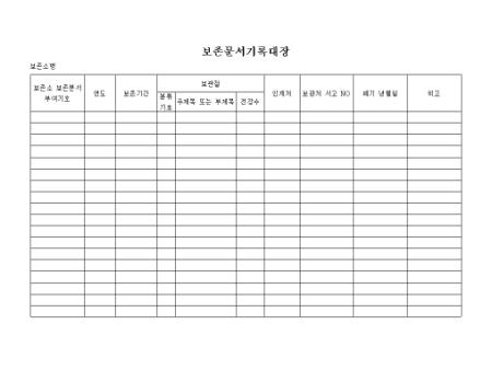 보존기간, 인계처, 보관처, 폐기일등 사내 문서에 대한 기록표양식입니다.