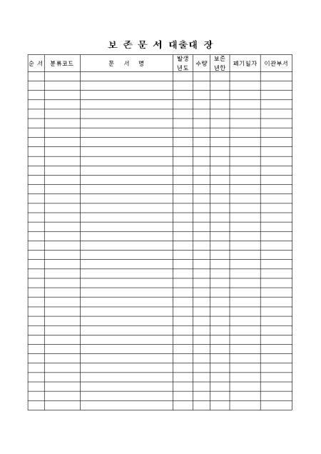 사내보존문서의 대출현황을 기록하는 양식입니다.
