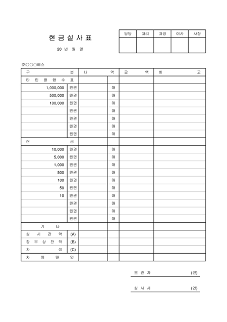 현금실사표(개정)