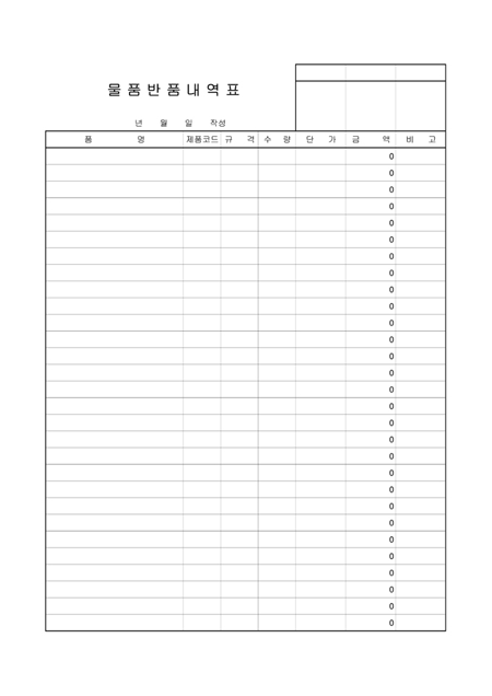 물품반품내역표