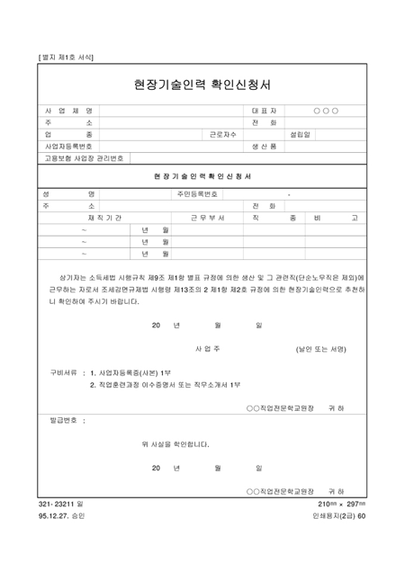 현장기술인력 확인신청서