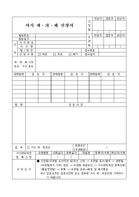 서식 제,개,폐 사유 또는 서식용도,검토의견을 기록하는 양식입니다.