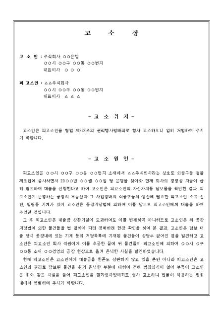 고소인은 피고소인을 형법 제323조의 권리행사방해죄로 형사 고소하오니 엄히 처벌하여 주시기 바랍니다 라는 내용의 고소장입니다