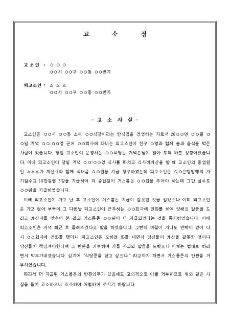 더 지급된 거스름돈의 반환의무가 있음에도 고의적으로 이를 거부하므로 위와 같은 사실을 들어 고소하오니 조사하여 처벌하여 주시기 바랍니다 라는 내용의 고소장입니다.