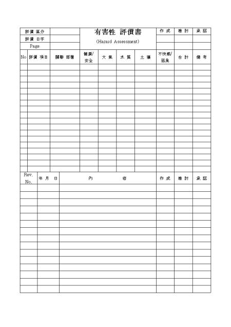 한문으로된 유해성 평가표입니다.