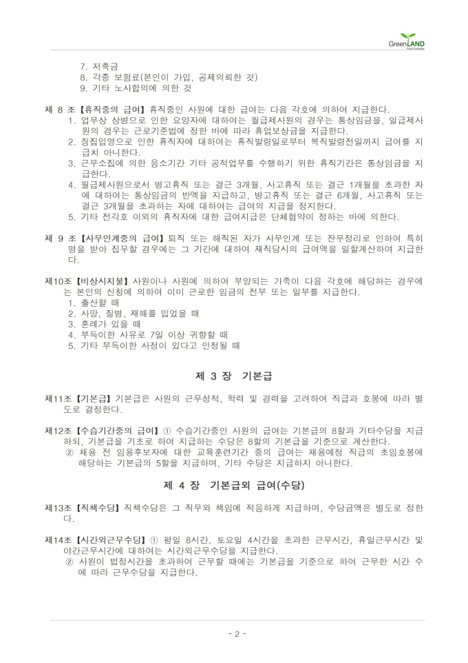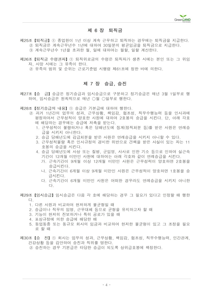 9,000원/월해당 서식은 중소기업의 현장,실무서식을 바탕으로 최적화된 부서별 표준서식입니다. 샘플내용, 작성방법, 관련규정 등 문서 하나에 모든 내용이 포함되어 있어 신입사원부터 사장님까지 누구나 쉽고 편리하게 사용할 수 있습니다. 우리회사만의 로고삽입이 가능하며 통일화된 양식으로 문서체계를 확립할 수 있습니다. 문서의 성격과 용도에 맞게 가장 안정적인 문서레이아웃으로 구성되어 있어 대내외용 문서로 활용도가 높습니다. 급여 규정(정규직) (작성방법 포함) ▶ 주요항목 : 총칙, 급여의 계산 및 지급, 기본급, 기본급외급여, 상여금, 퇴직금, 승급, 승진 등 ▶ 작성방법 및 서식활용TIP : 회사의 규정 작성 시 근로기준법 등의 법령을 바탕으로 회사 내 직원이 지켜야할 기준, 규칙 등을 명시하여야 하며, 회사 내 직원이 쉽게 볼 수 있도록 회사 내 비치하거나 게시하여야 합니다.