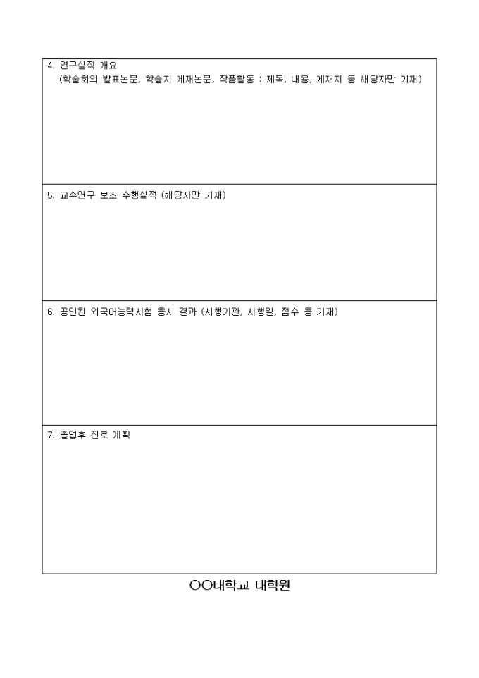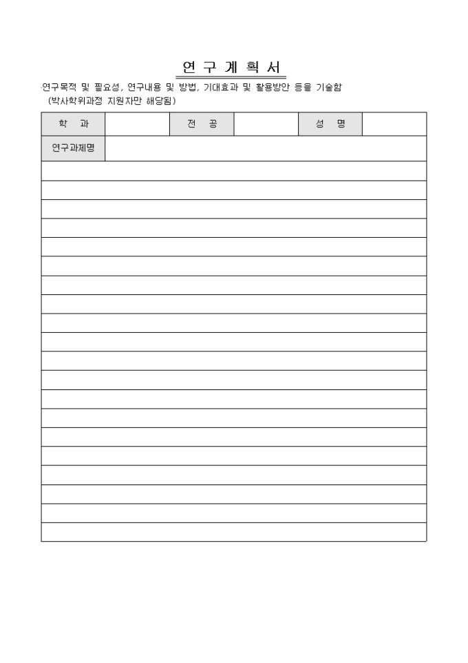 9,000원/월학위과정, 학과, 전공, 성명, 진학동기 및 목표 등의 항목으로 구성된 대학원 학업계획서 양식입니다