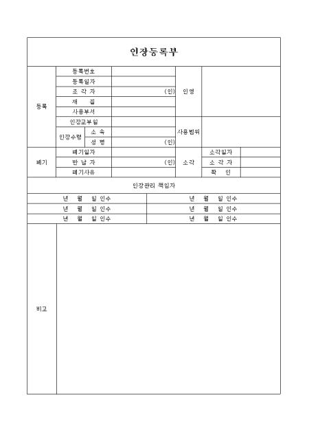 인장 등록,폐기내역을 기록하는 인장등록부입니다.