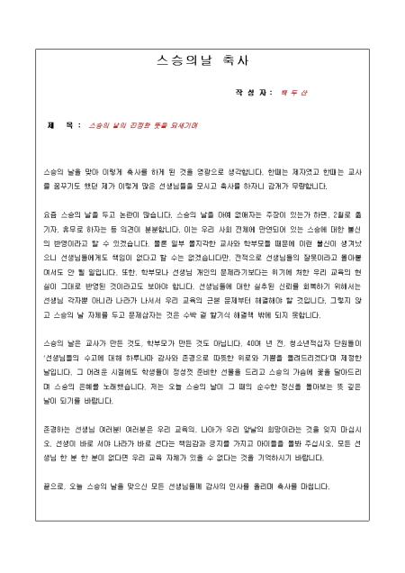[우수작]스승의날 축사(진정한 뜻을 되새기자)