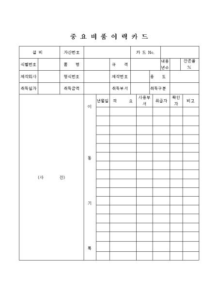 사진을 부착하는 중요비품이력카드입니다.